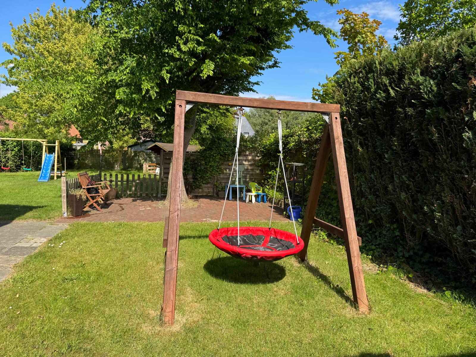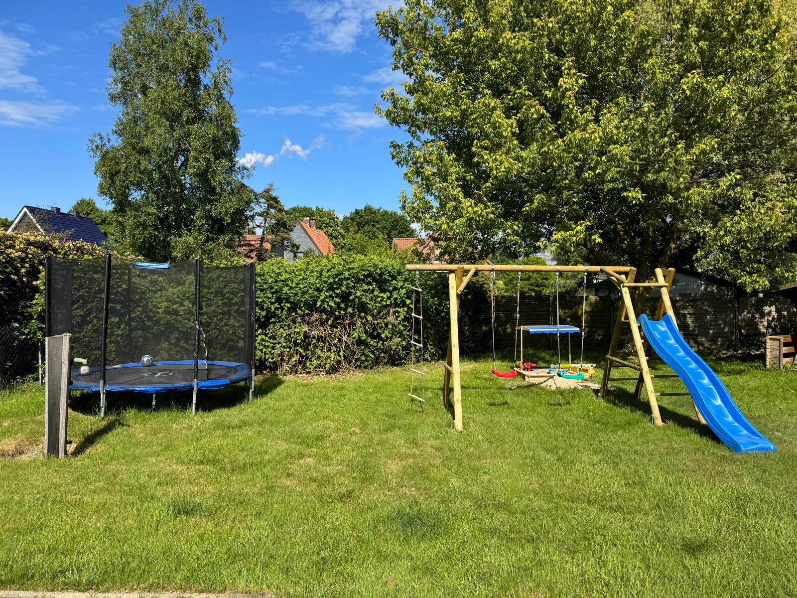 Ihre Kinder können viel Spaß mit unseren Spielgeräten haben. Es gibt eine Rutsche, einen Sandkasten, eine Schaukel, ein Trampolin und ein Fußballtor.
